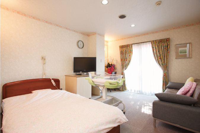 産後1日目から母児同室を基本とし、お母さんと赤ちゃんが一体となってお互いに成長しあう関係になれるよう、お手伝いさせて頂いております。